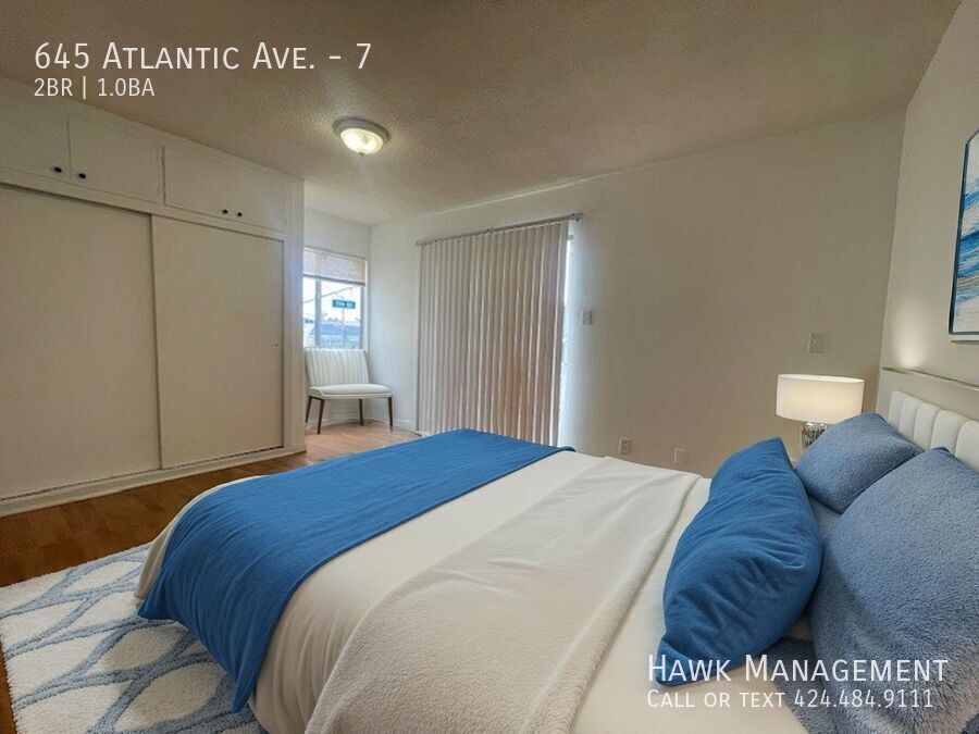 Located on the top floor of a quiet, gated building, this 2-bedroom, 1-bath apartment offers rare outdoor space and a comfortable layout in a central Long Beach location.