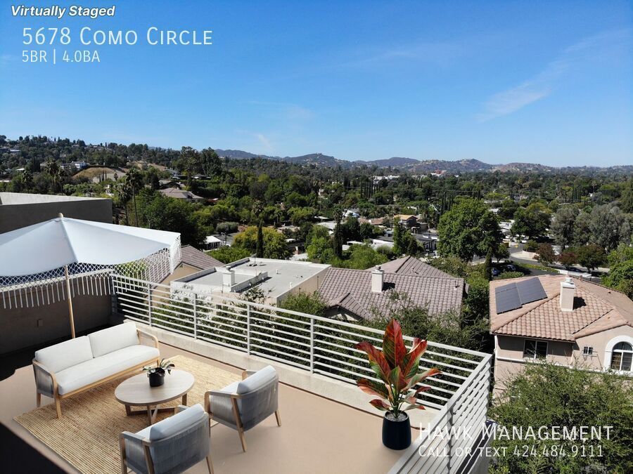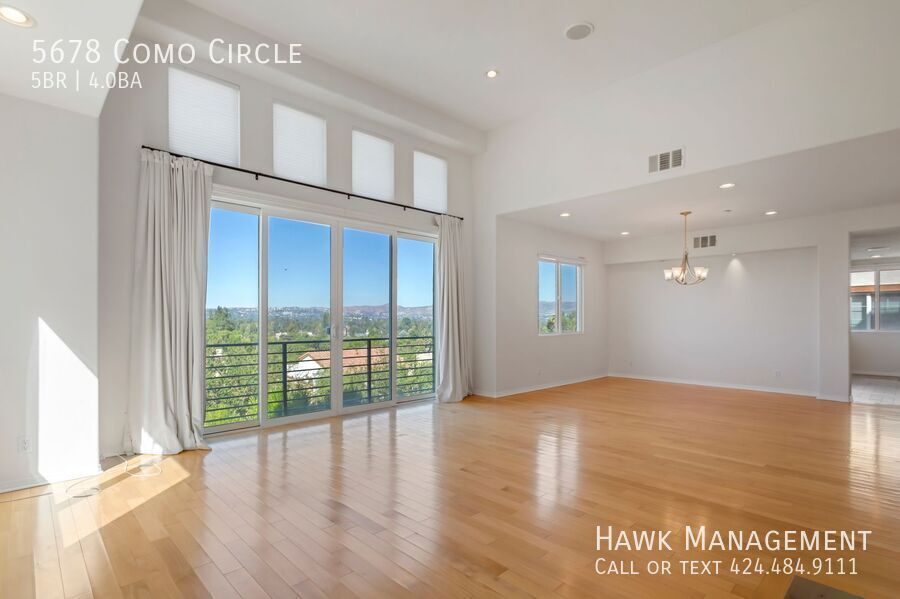 Experience breathtaking views from this stunning three-story modern residence, located in a gated community in Woodland Hills. This spacious home offers high ceilings, an open floor plan, and natural light throughout.